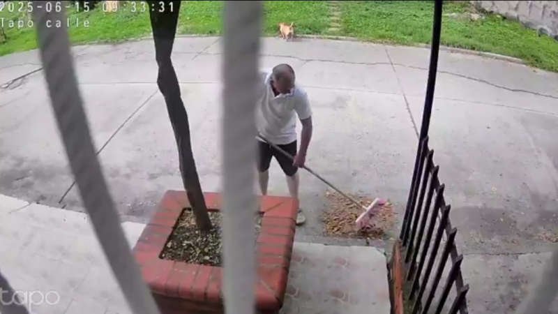 En las imágenes de video se observa cómo un hombre que barría frente a su casa logra apartarse segundos antes del impacto, evitando así ser arrollado por el vehículo que invadió completamente la zona peatonal.