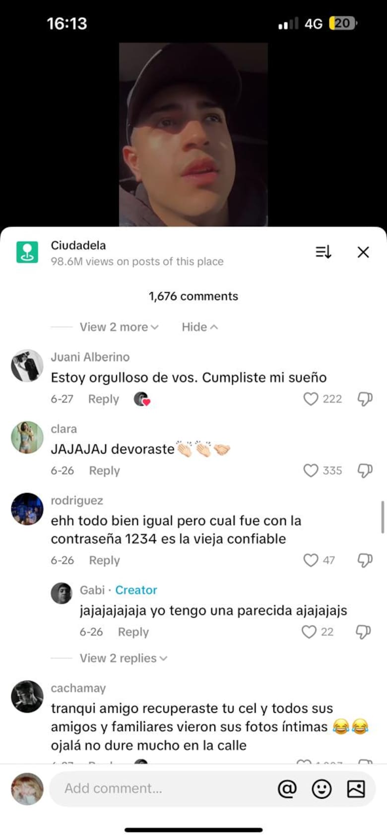 Tras intentar contactarse con algún familiar para devolver el celular —incluyendo a la propia madre del ladrón, quien no respondió—, Gabriel tomó una decisión que dividió opiniones: subió el contenido personal del ladrón a sus redes sociales y lo expuso públicamente. Su publicación en TikTok rápidamente se viralizó y obtuvo miles de reproducciones. En los comentarios, muchos celebraban lo que consideraban un acto de “justicia por mano propia”, mientras otros criticaban la exposición pública como un acto innecesario y potencialmente ilegal.